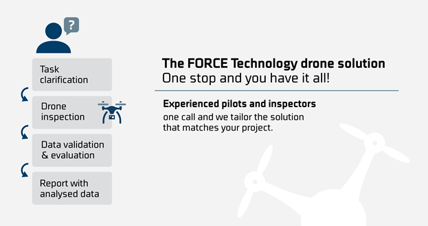 Hos FORCE Technology sikrer vi, at du får den bedste inspektionsløsning - med eller uden droner. Kontakt os for en skræddersyet løsning til din inspektionsopgave.