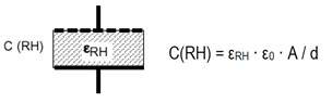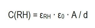 ɛRH er den relative permittivitet (eller dielektricitetskonstanten) for polymeren ved en given relativ fugtighed, ɛ0 er vakuumpermittiviteten, A er elektrodearealet (det 'fælles' areal imellem elektroderne) og d er afstanden imellem elektroderne.