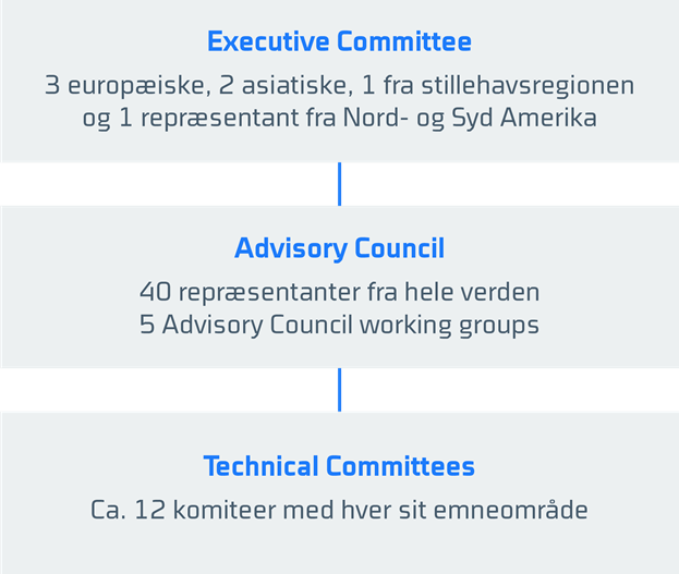 Konferencen er en organisation, der arbejder i 3-årige sprint, hvor specifikke problemstillinger vurderes og underkastes behandling i en lang række tekniske komitéer. De tekniske komitéer, der sammensættes af medlemmer fra mange lande, har veldefinerede formål, der udarbejdes af de øverste styrende komitéer og godkendes af organisationens generalforsamling hvert tredje år. Alle 7 verdensdele er repræsenteret i Executive Committee. Under Executive Committee er Advisory Council, der følger og styrer komitéernes arbejde. Organisationen er vist på Figur 1.
