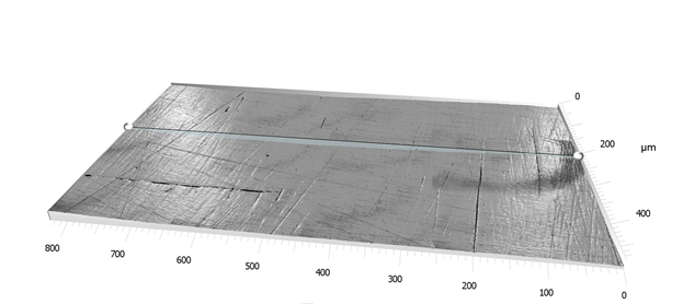 Der er i projektet arbejdet med forskellige overflader, hvor der er foretaget mikroskopisk undersøgelse og beregning af den 2-dimensionale hygiejnefaktor (jævnfør billede 1 og 2).