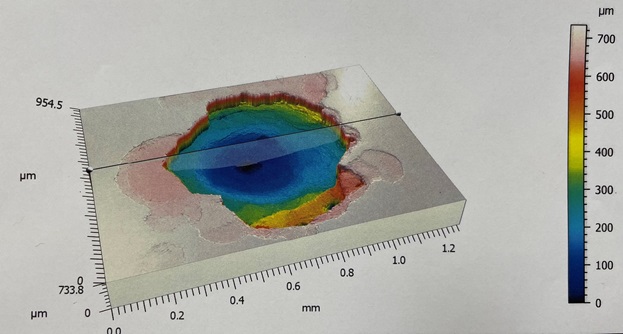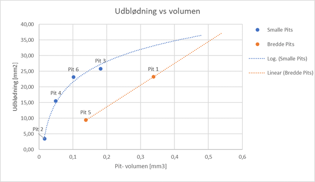 Pits fra tanksiden er blevet analyseret og volumenbestemt i 3D mikroskop, hvorefter korrelationen mellem udblødning og volumen er bestemt. Hypotesen var en lineær sammenhæng mellem udblødning og volumen i kaviteten.