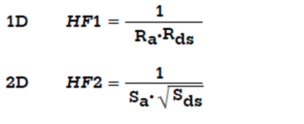 Den dimensionsløse hygiejnefaktor kan derfor udregnes for både 1-dimensionale (HF1) og 2-dimensionale (HF2) målinger: