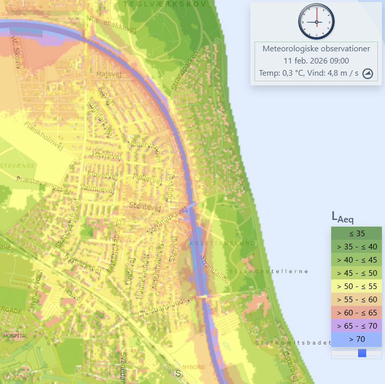 Trafikstøj ramte tæt bebyggede boligområder i Nyborg