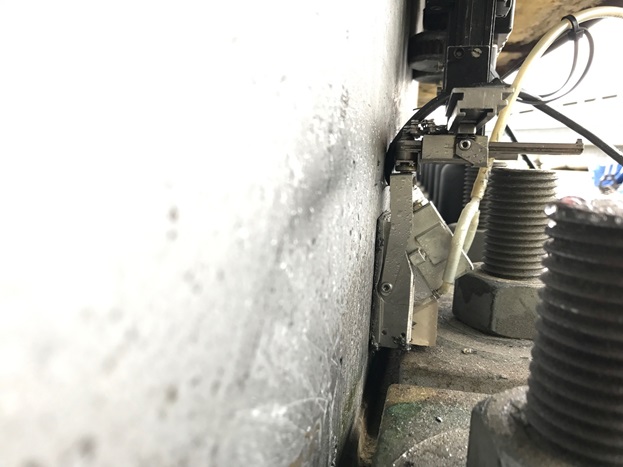 På denne baggrund foreslog FORCE Technology at benytte automatiseret phased array ultralydprøvning, da man med denne inspektionsmetode med én probe og én probe-position kan dække hele svejsningen i den rundtgående retning af tanken – også selvom der er fysiske begrænsninger for placeringen af proben pga. de påboltede plader.