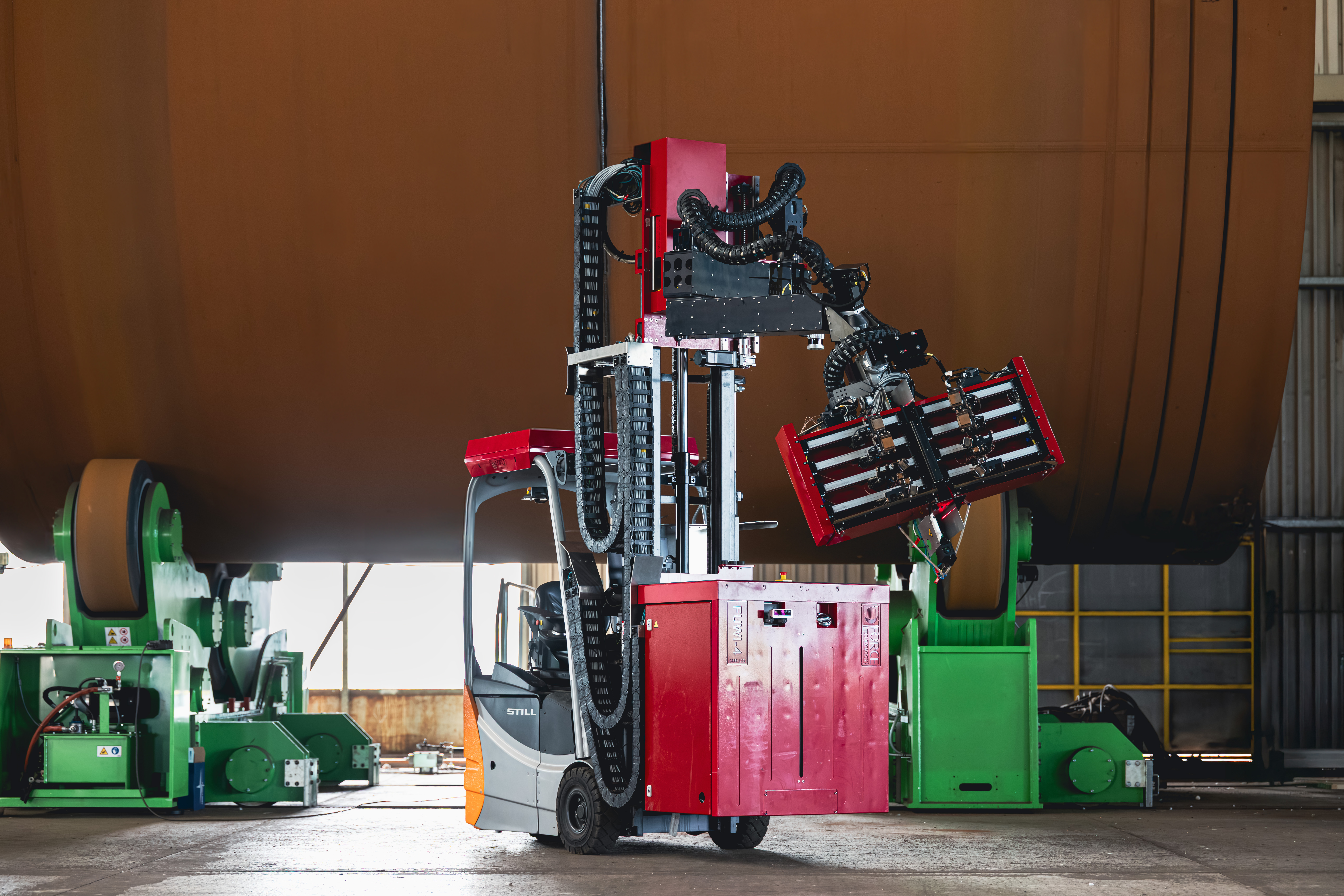 The Fast Ultrasonic Weld Inspection (FUWI) unit is an automated inspection solution used by production, quality and inspection teams in wind energy manufacturing where towers, monopiles and transition pieces are produced at scale. The need typically arises when weld inspection must keep pace with continuous production without slowing the flow of large structures through the line. When inspection depends on manual or semi-automatic approaches, limited capacity and delayed feedback can increase roller time, create bottlenecks and postpone corrective actions.