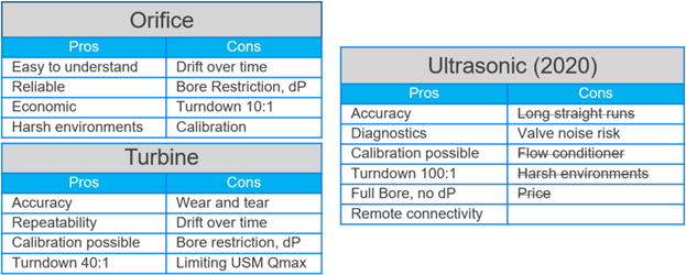 Three prevailing large volume gas measurement technologies