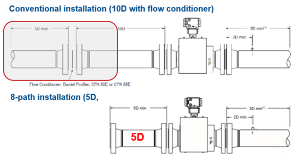 With the evolution of technology, ultrasonic meters now offer more paths, such as 8-path meters. These advanced meters improve measurement accuracy, maintain high performance despite upstream disturbances, and reduce the need for lengthy upstream piping or flow conditioning.
