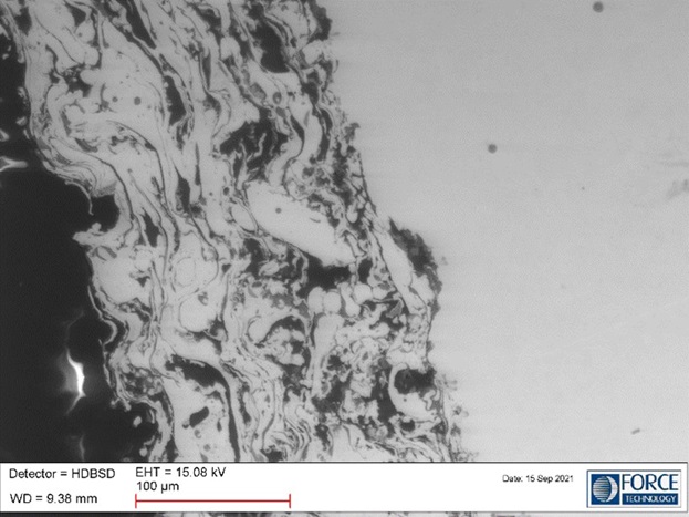 "It's important for the sample to be conductive so that electrons don't simply build up on the surface. If that happens, the data from the electron microscope will be inaccurate," Øding explains. "It's also very important for the moulding material to be sufficiently fluid to get into all the cracks and crevices without destroying the fragile, porous structure."