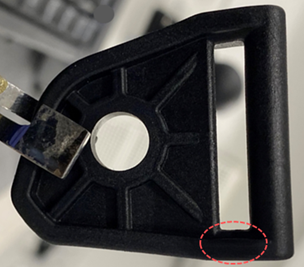 In this case, 3D X-ray computed tomography provided a non-destructive method for evaluation of the injection moulding process quality and thus the strength of the bracket. 3D X-ray computed tomography could be implemented for quality control periodically or even at batch level for these critical brackets.