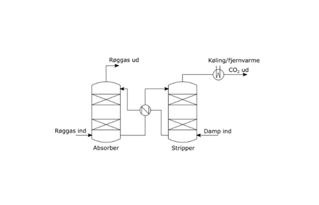 The scrubber/stripper process is suitable for large point sources that generate energy, such as power plants. In Denmark, waste processing plants and the extensive network of district heating plants are ideal for this carbon capture method. The exhaust must be cooled before it reaches the scrubber, and exhaust cooling has already been implemented in most Danish waste incineration plants in the form of heat exchangers.