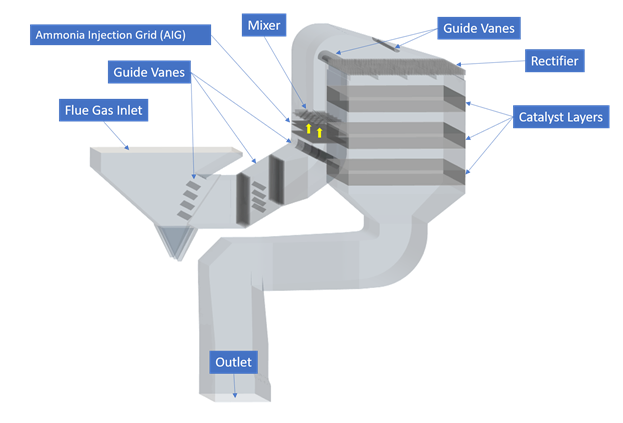 - Improved homogeneity: The redesign achieved a more uniform flue gas and ammonia mixture before reaching the catalyst layers.