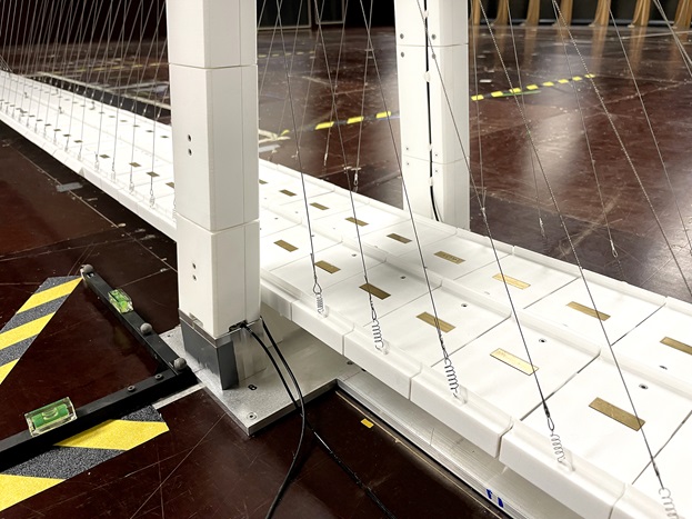 Aeroelastic full-bridge model tests followed, using an 8.7m long model of the entire structure, including deck, piers, towers and cables in a 1:150 scale to document the overall aerodynamic performance and validate its stability when exposed to turbulent boundary-layer flow.